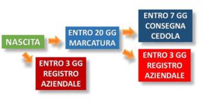 Le normative stabiliscono che, a partire dal 1° luglio 1998 tutti gli animali della specie bovina, allevati e detenuti sul territorio nazionale, devono essere registrati nella banca dati nazionale dell’anagrafe bovina (BDN), previa identificazione individuale, ai sensi dell’art. 3 del D.M. 31 gennaio 2002, e dell’art. 9.1 del Manuale Operativo, mediante l’applicazione su ciascun orecchio di un marchio, tipo maschio e femmina, in doppio esemplare (4 facciate).