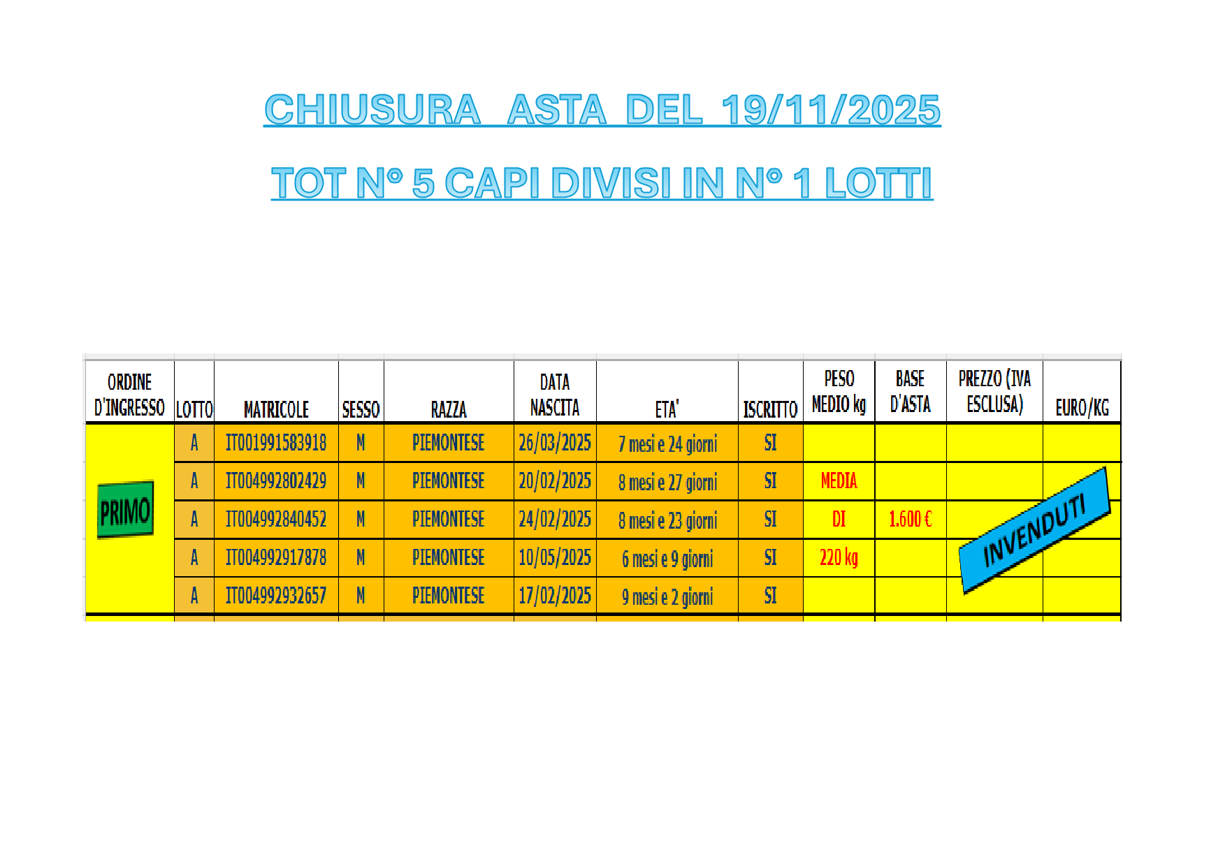 Si è svolta oggi, mercoledì 19 novembre 2025, l’attesa Asta dei Bovini Piemontesi e dei bovini da ingrasso presso il Foro Boario di Piazza Italia. L’evento ha registrato una buona affluenza di pubblico, composta da allevatori, esperti del settore e appassionati.