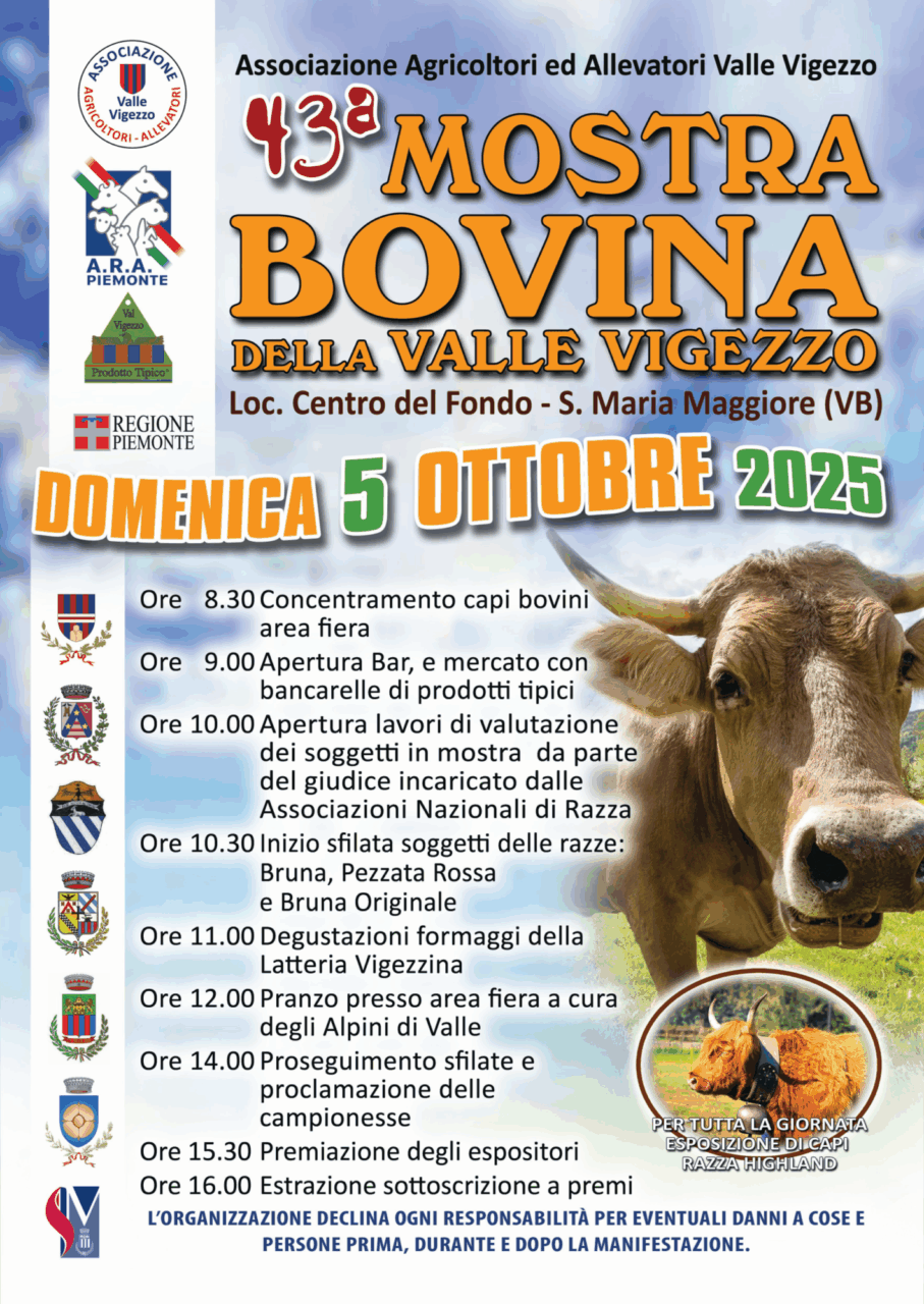 43ª Mostra Bovina della Valle Vigezzo – Domenica 5 ottobre 2025 a Santa Maria Maggiore (VB)...30 Settembre, 2025