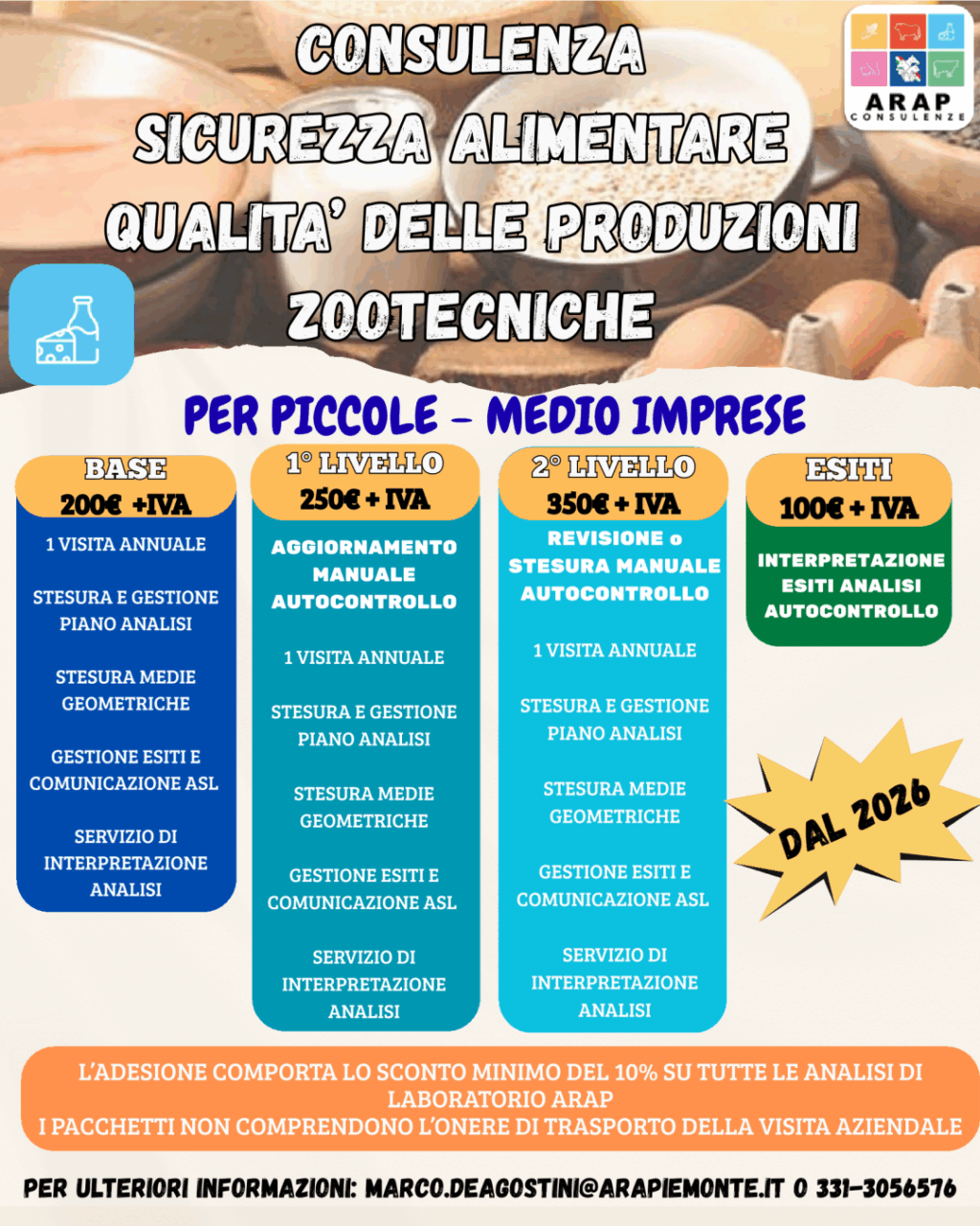 ARAP Piemonte: i nuovi pacchetti HACCP 2026 per la gestione dell’autocontrollo e della sicurezza alimentare....12 Novembre, 2025